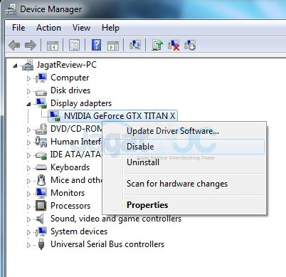 1) Disable VGA dari device manager
