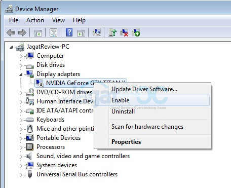 4) Enable kembali kartu grafis pada device manager