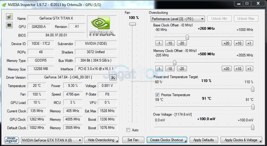 Jika anda sudah sampai tahap ini, selamat! Anda sudah berhasil mem-flash GTX TITAN X! Berikut ini nilai power limit sebelum dan sesudah melakukan proses flashing, seperti yang terlihat pada utility NVInspector: