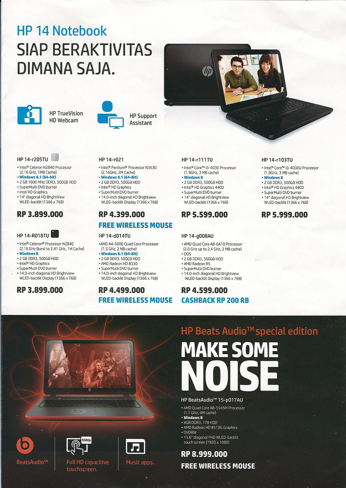 - Pavilion 14-V040TX/14-V041TX/14-V042TX – Rp 7.499.000