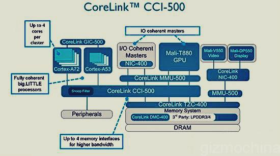 Cortex A72 akan menggunakan proses pabrikasi 16nm sehingga lebih hemat daya sebanyak 75%. Arsitektur Cortex A72 sendiri diklaim memiliki kecepatan hampir dua kali lipat dibandingkan Cortex A57. Selain itu, GPU Mali T860/880 memiliki peningkatan kecepatan sebesar 1,8 kali lipat dibandingkan dengan Mali T760 serta lebih hemat daya 40%.