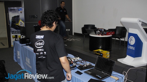 Selepas live demo teknologi terbaru selesai dibawakan, tim Jagat Review akan melanjutkan acara dengan menggelar workshop overclocking. Workshop ini diharapkan dapat memberikan gambaran terkait praktek overclocking, baik untuk harian maupun kompetitif, kepada mahasiswa Univ. Multimedia Nusantara. Semoga saja, workshop ini akan menghasilkan tim yang siap bertempir di acara Intel XTU Challenge yang akan digelar di Techno Update tanggal 31 Maret 2015 besok di Univ. Bina Nusantara.