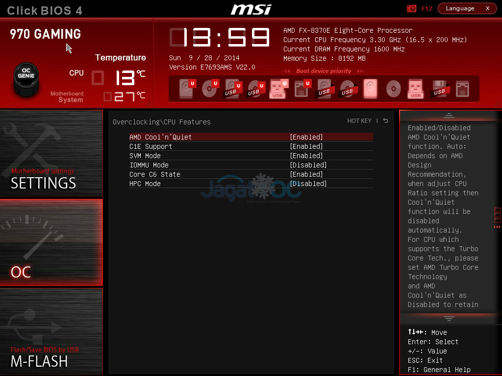 UEFI BIOS pada mobo MSI 970 GAMING memiliki opsi tuning yang lebih dari cukup bagi power-user sekalipun. Mari kita lihat beberapa opsi yang terdapat padanya: