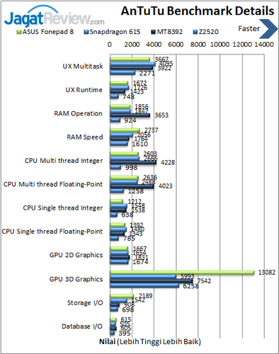 AnTuTu Benchmark merupakan sebuah benchmark suite yang menguji RAM, CPU, GPU, dan Storage yang ada, termasuk SD Card bawaan. Perhitungan total nilainya cukup mudah, yaitu dengan menjumlahkan nilai perolehan dari tiap detail. Karena tidak semua smartphone Android memberikan SD Card sebagai bonus perlengkapan, kami menghadirkan dua nilai akhir yang dapat Anda jadikan patokan. Untuk menghindari kecurangan, kami melakukan pengujian pula pada Antutu Benchmark X.