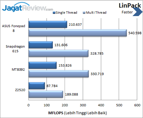 LinPack merupakan benchmark untuk mengukur kinerja sebuah perangkat dalam menghitung floating point. Hasilnya dalam bentuk nilai operasi floating point per detik atau MFLOPS (Million Floating Point Per Second). Semakin tinggi nilainya, semakin baik.