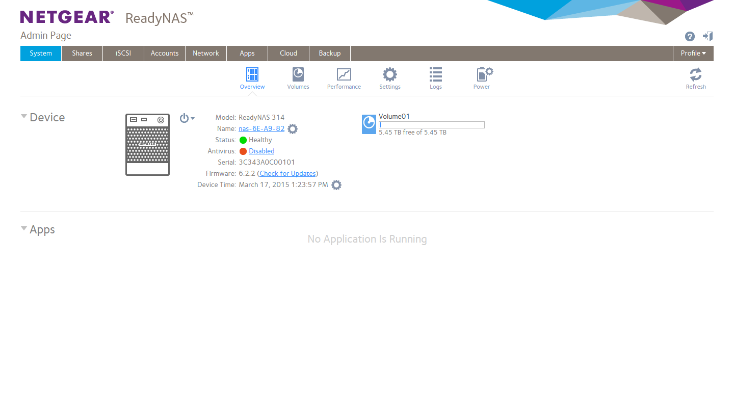 Sistem operasi ReadyNAS yang digunakan tidak memiliki perbedaan berarti bila dibandingkan dengan versi NAS untuk rumahan dari NetGear. Tampilan user interface sederhana dengan integrasi tombol ke dalam icon juga masih dianut di RN314 ini. Untuk tombol-tombol itu, tentunya pengguna harus jeli untuk menemukan bahwa beberapa icon menyimpan tombol untuk konfugrasi fungsi tertentu, sehingga pengguna tidak kebingungan harus membuka menu apa untuk mengakses konfigurasi tertentu tersebut.