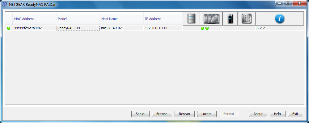 Tool RAIDar juga masih menjadi andalan dari NetGear untuk membantu mempermudah pengguna mengakses RN314 yang telah terpasang dalam jaringan lokal. Hanya dengan satu klik, tool itu akan langsung mencari dan menemukan RN314 dan NAS NetGear lain di jaringan lokal. Selanjutnya, tool tersebut akan menawarkan pilihan untuk masuk ke shared folder dari NAS atau melakukan konfigurasi pada NAS itu.