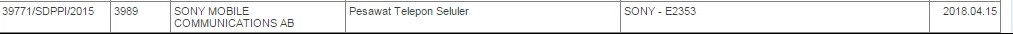 Sony E6533(Xperia Z4), E5333 & E2353, Resmi Tersertifikasi di Indonesia