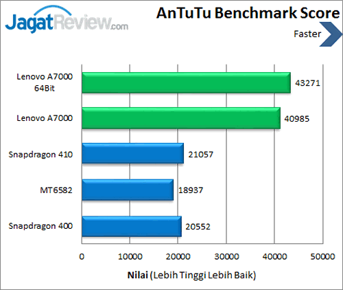 AnTuTu Benchmark merupakan sebuah benchmark suite yang menguji RAM, CPU, GPU, dan Storage yang ada, termasuk SD Card bawaan. Perhitungan total nilainya cukup mudah, yaitu dengan menjumlahkan nilai perolehan dari tiap detail. Karena tidak semua smartphone Android memberikan SD Card sebagai bonus perlengkapan, kami menghadirkan dua nilai akhir yang dapat Anda jadikan patokan. Kami juga menguji instruksi 64 bit dengan Antutu ini.
