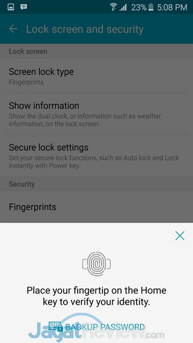 Beralih ke keamanan, Galaxy S6 memiliki feature fingerprint unlock dimana hanya sidik jari si pengguna saja yang bisa digunakan untuk membuka kunci. Samsung mengklaim feature pembaca sidik jari tersebut telah mengalami berbagai peningkatan dan bisa membaca sidik jari pengguna dengan lebih baik. Perlu diketahui bahwa pengguna bisa menyimpan hingga 4 profile sidik jari sekaligus. Tak hanya itu, fingerprint scanner ini juga bisa digunakan untuk login ke aplikasi tertentu, contohnya Facebook.