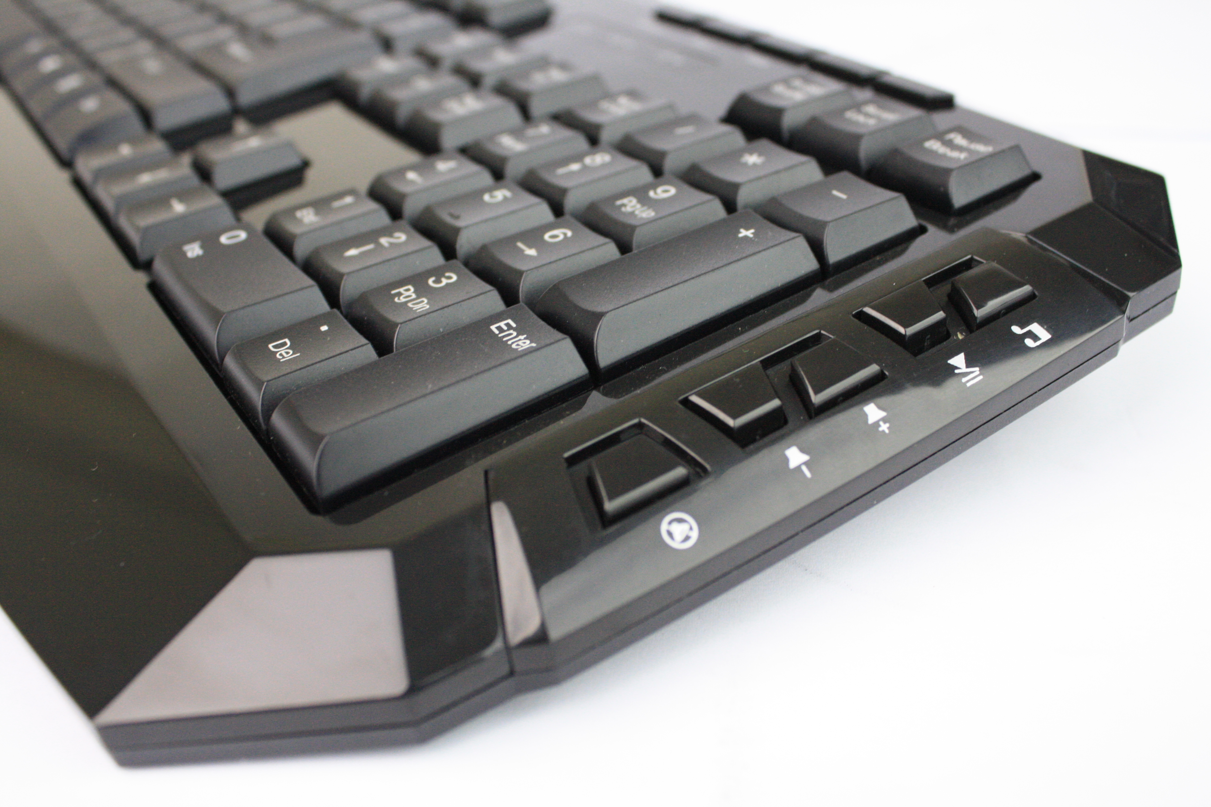 Berdasarkan pengujian kami, tombol multimedia (Music, Play/Pause, Volume Up, Volume Down, dan Mute di bagian kanan keyboard, serta Previous dan Next di kanan atas, dekat dengan lampu indikator) memiliki kompabilitas yang cukup beragam. Tombol shortcut multimedia tersebut bisa digunakan di banyak media player, di antaranya Windows Media Player, Foobar, Media Player Classic, VLC, dan lain sebagainya. Sayangnya, tombol Volume Up, Volume Down, dan Mute ternyata langsung mengarah ke Main Volume Control di sistem operasi, bukan Volume Control milik aplikasi multimedia.