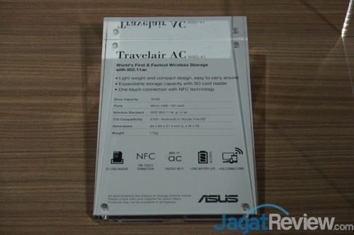 ASUS memperlihatkan benda benda yang cukup menarik tahun ini. Salah satu yang menarik perhatian kami adalah Travelair AC. Wireless Storage ini di klaim ASUS adalah yang terkencang dan satu satu nya yang menggunakan standar wireles 802.11ac!
