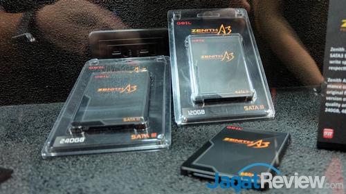 Produk lain yang ditampilkan GeIL di booth mereka adalah SSD Zenith A3 Series. SSD ini diklaim mampu memberikan kecepatan baca-tulis hingga 540 MB/s dan 300 MB/s. Nantinya, SSD ini akan tersedia dalam kapasitas 120 GB, 240 GB, 480 GB, dan 1 TB.