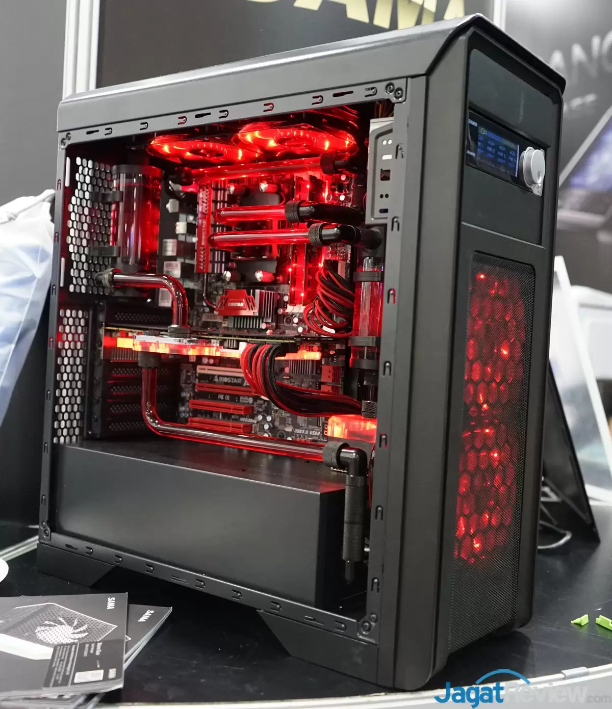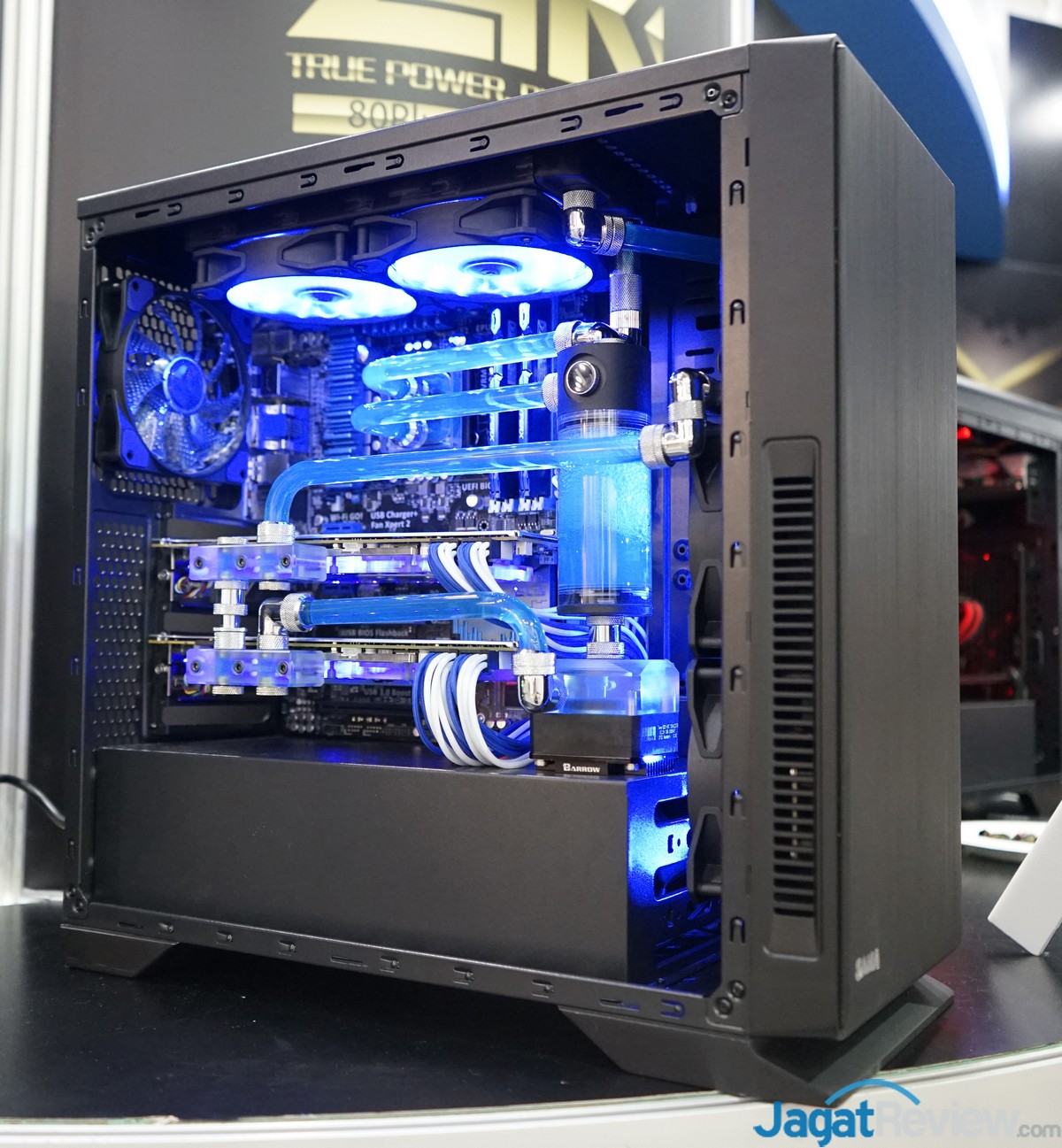 Tidak hanya memamerkan kelas entry-level saja, SAMA juga memproduksi casing untuk pasar kelas High-end yang mampu menampung watercooling custom sekelas EKWB.