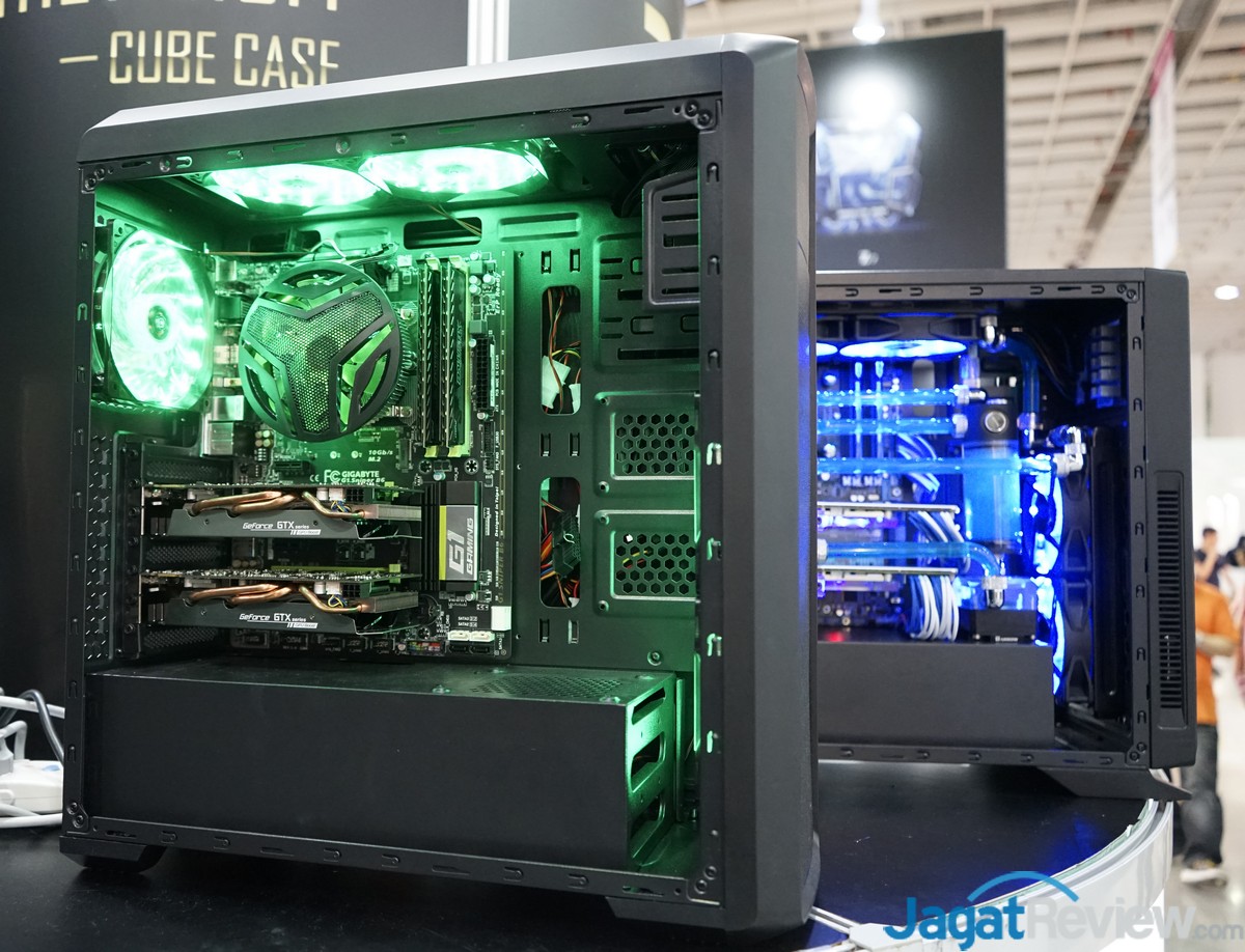 Pada bagian booth ini, kami melihat sebuah casing yang bentuknya sangat familiar di pasar PC rakitan Indonesia, yakni casing SAMA MA08 yang dikenal dengan nama Dazumba DE230 di pasar PC rakitan Indonesia.