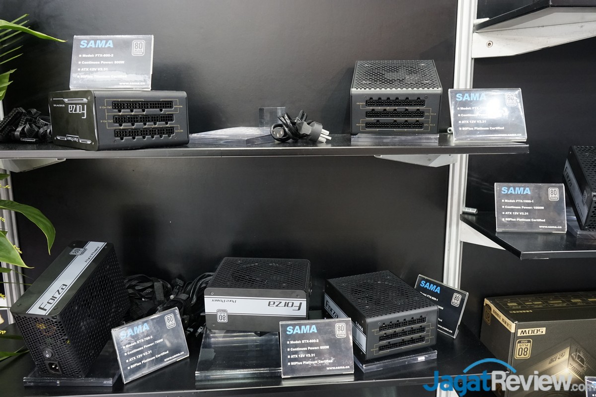 Jika mendengar nama Dazumba untuk produk power supply, kebanyakan orang akan berpikir ke sebuah produk power supply kelas entry-level. Akan tetapi kesan tersebut tidak begitu terlihat pada booth SAMA ini, mereka memiliki PSU kelas High-end berkapasitas 1000~1200 watt yang memiliki sertifikasi 80+ Platinum hingga 80+ Titanium.