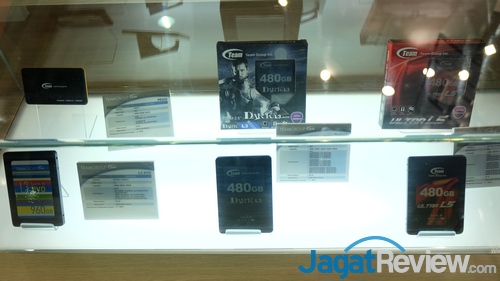 Untuk produk SSD, Team menampilkan berbagai SSD terbaru mereka, mulai L3 EVO, Dark L3, Ultra L5, serta PD200. Tiga produk SSD dari jajaran L Series merupakan produk untuk storage internal di PC, sementara PD200 dapat digunakan sebagai storage internal maupun eksternal. Sedangkan untuk jenis memori, L3 EVO menggunakan chip TLC, sementara tiga SSD lainnya menggunakan chip MLC.
