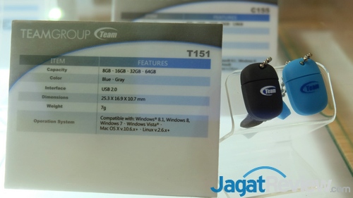 Beralih ke jajaran produk USB flash drive. Kali ini, Team membawa serta cukup banyak USB flash drive baru mereka yang rata-rata memiliki desain unik. Sayangnya, banyak di antara USB flash drive itu yang masih menggunakan interface USB 2.0. Namun, tentunya Team juga tetap memiliki USB flash drive dengan USB 3.0.