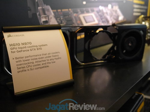 Tak ingin ketinggalan di ranah produk watercooling, Corsair juga punya produk andalan terbaru yang dipamerkan di showroom mereka, Grand Hyatt Taipei, selama penyelenggaraan Computex 2015. Untuk tahun ini, pihak perusahaan memperkenalkan Hydro Series HG10 yang ditujukan untuk versi reference dari GTX 970, GTX 980, GTX 980 Ti, serta Titan X.