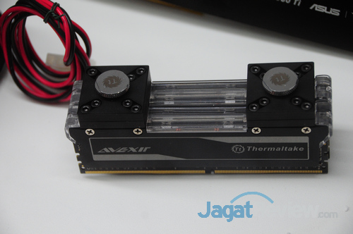 Selain Memory, Thermaltake juga memproduksi Waterblock untuk graphics card. Untuk komponen yang satu ini, Thermaltake bekerjasama dengan ASUS untuk merancang pendingin khusus NVIDIA GTX 980 Ti.