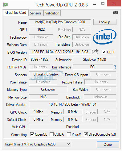Spesifikasi prosesor Core i7-5775C sudah beredar luas, dan bisa dilihat pada website Intel. Berikut deteksi kecepatan CPU menurut CPU-Z & GPU-Z: