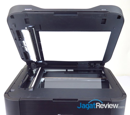 Printer multifungsi Canon MAXIFY MB5370 memiliki bentuk persegi dengan tinggi dan volume yang cukup tebal, membuatnya sulit untuk menempatkannya di sebuah ruang kerja yang sempit atau terbatas.