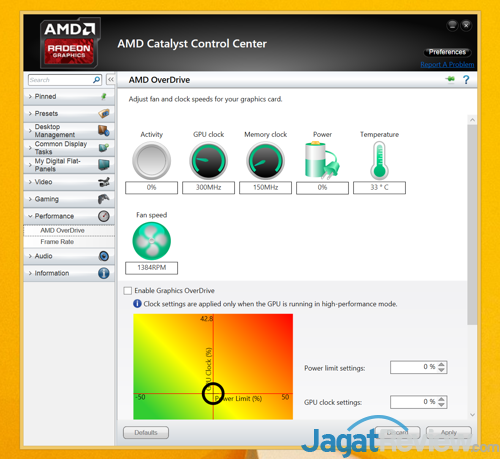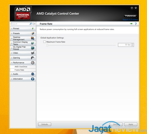 Pada Performance, terdapat dua pilihan, yakni “AMD OverDrive” dan “Frame Rate”, pilih “Frame Rate”.
