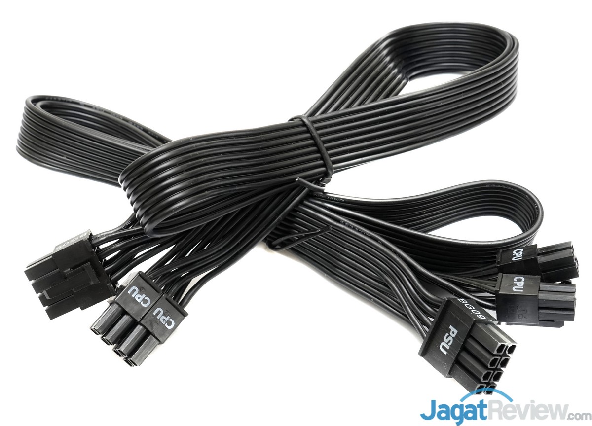 PSU CoolerMaster V850 ini dilengkapi dengan 2 kabel modular power CPU 12V 4+4pin yang biasanya dibutuhkan oleh motherboard kelas high-end yang didesain untuk kebutuhan overclocking.