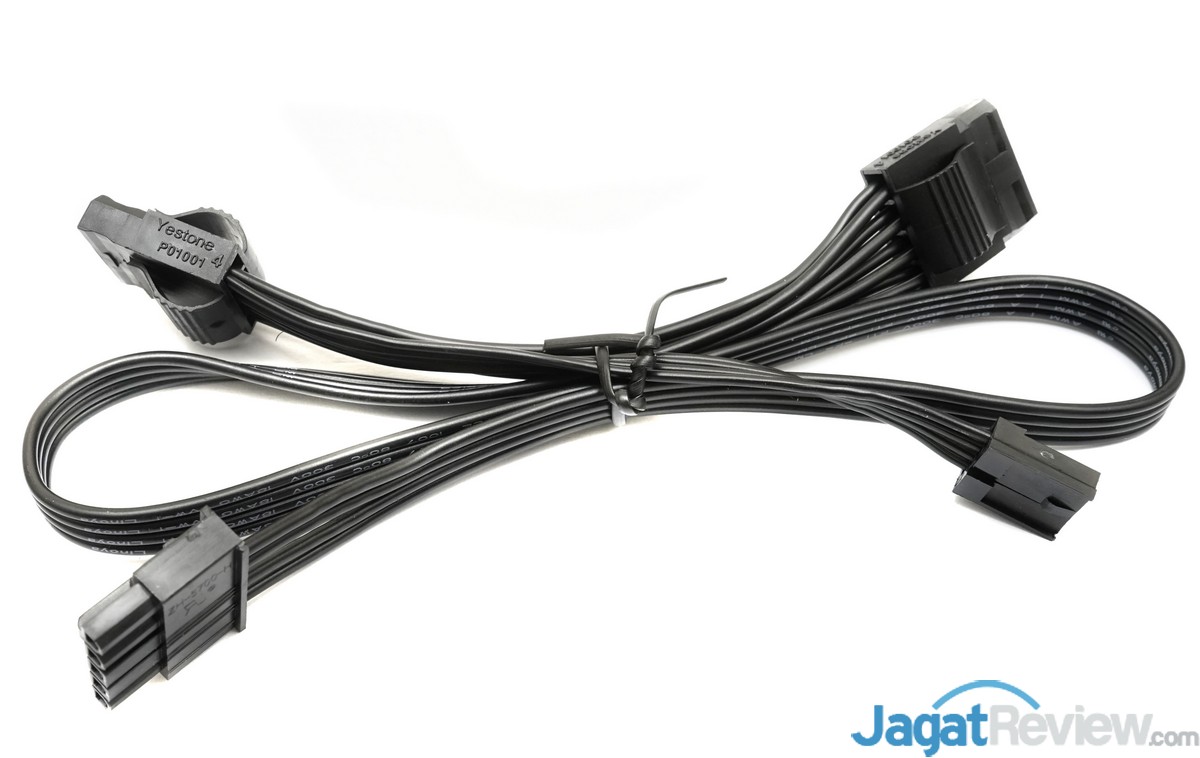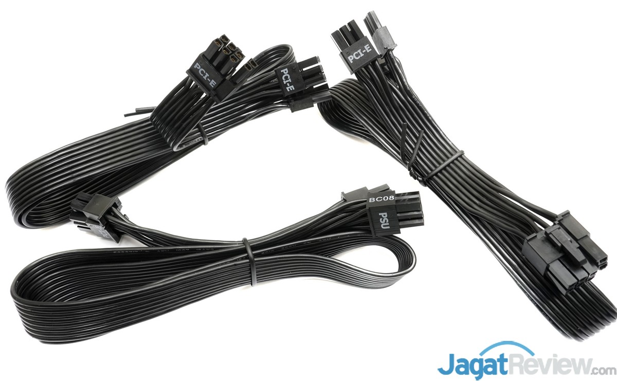 PSU CoolerMaster V850 ini dilengkapi dengan 3 kabel modular PCIe power yang masing-masing memiliki 2 konektor 6+2 pin.