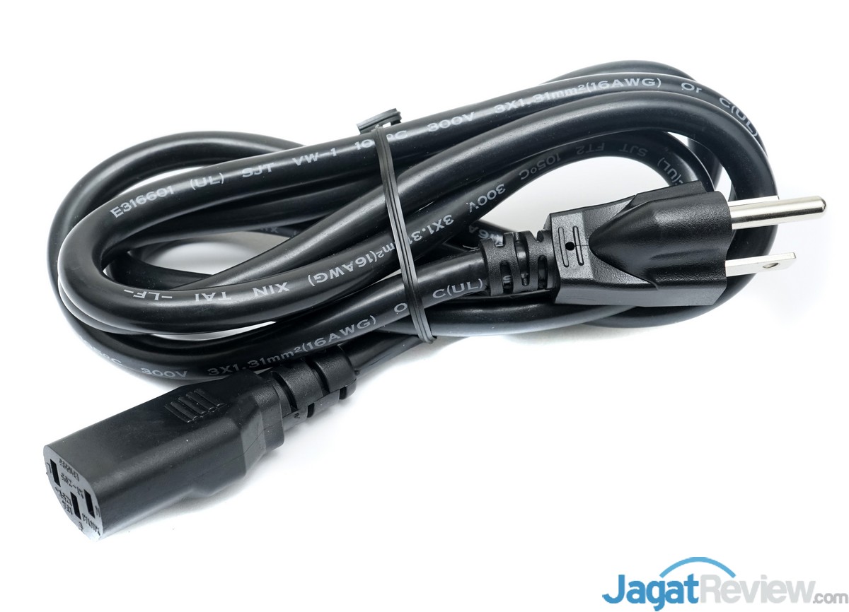 PSU Corsair RM850i ini dilengkapi dengan kabel AC yang cukup tebal, seperti yang biasanya digunakan pada PSU kelas high-end berdaya tinggi.