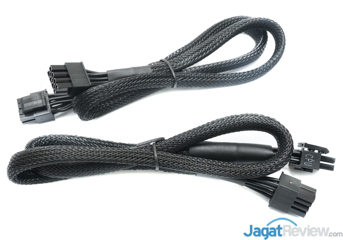 PSU RM850i ini merupakan salah satu produk PSU kelas premium dari Corsair, maka tidak heran jika PSU ini dilengkapi dengan 2 buah kabel modular power CPU 12V 4+4pin yang biasanya dibutuhkan oleh motherboard kelas high-end yang didesain untuk kebutuhan overclocking.