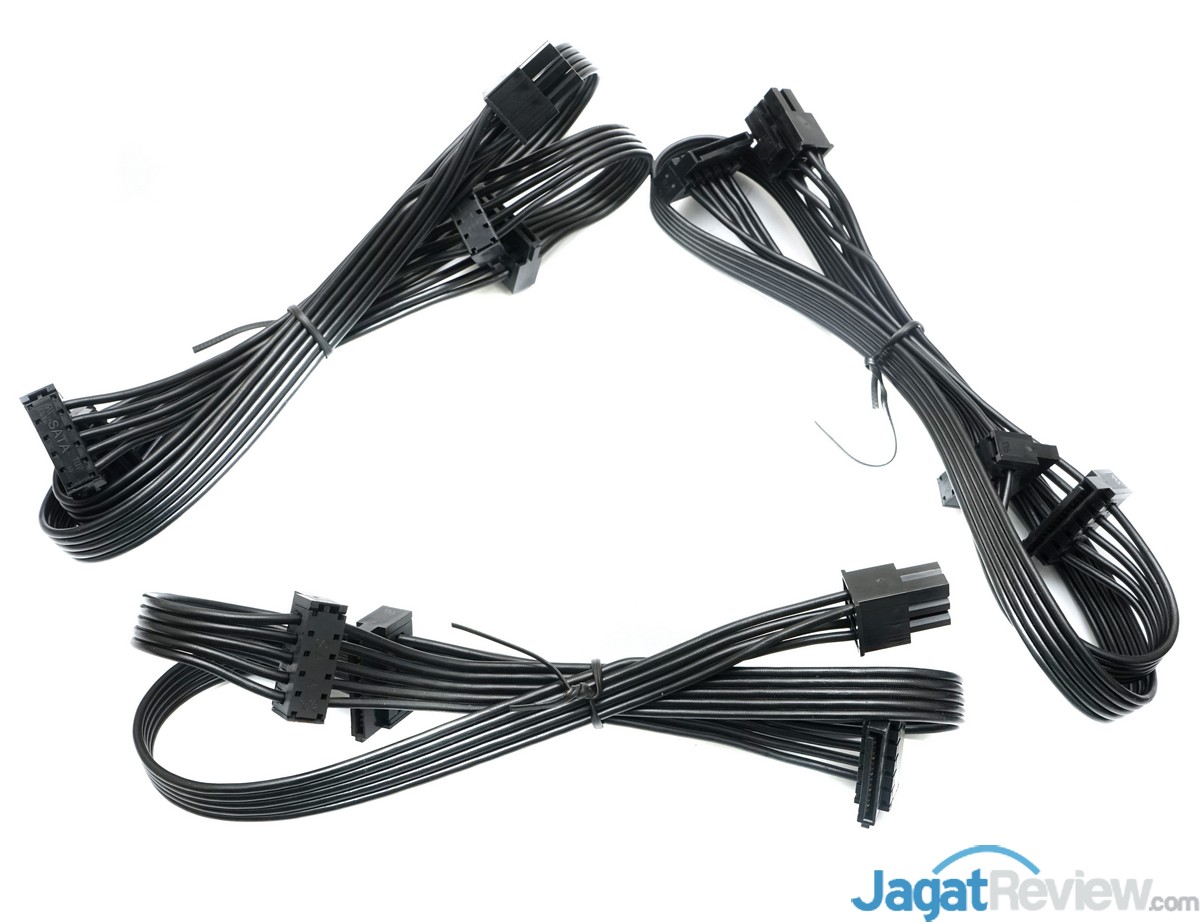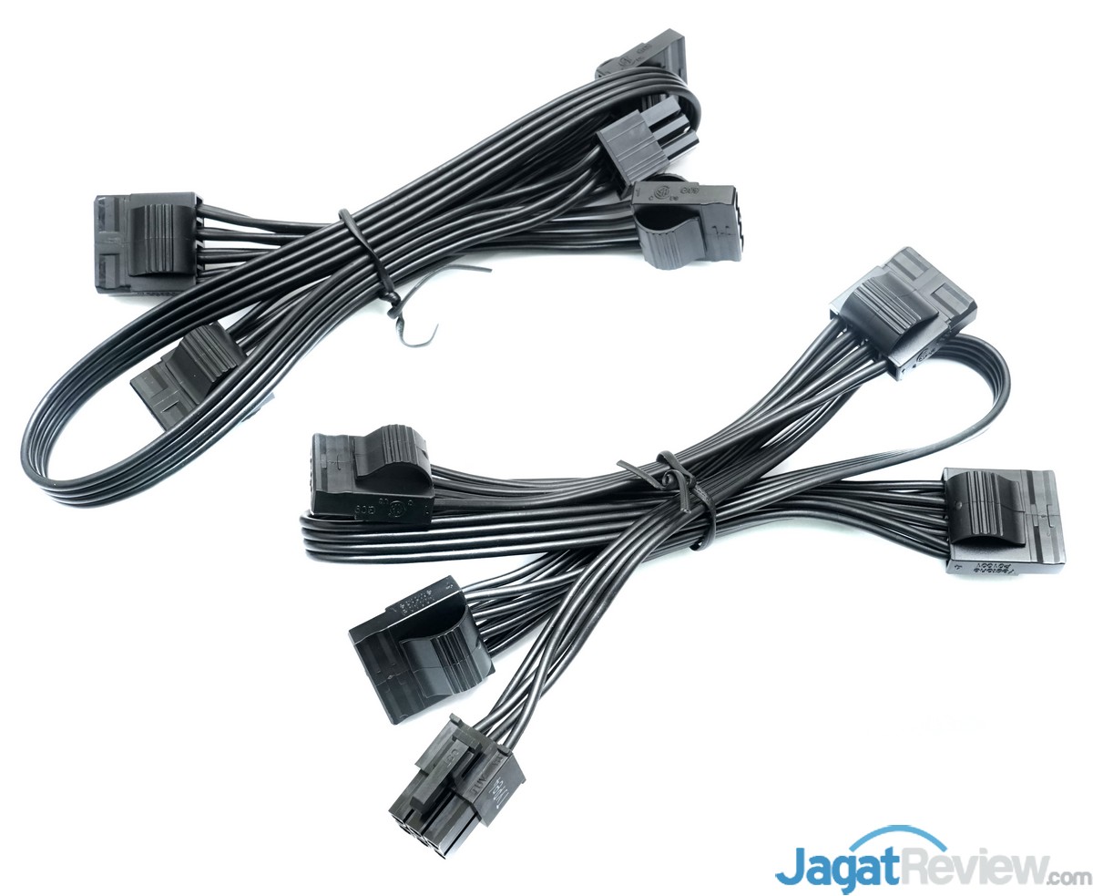 PSU Corsair RM850i ini dilengkapi dengan 3 kabel modular PCIe power yang masing-masing memiliki 2 konektor 6+2 pin.