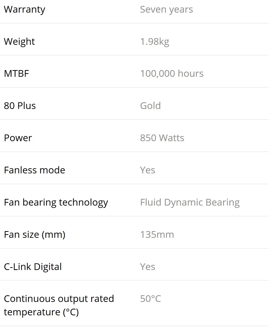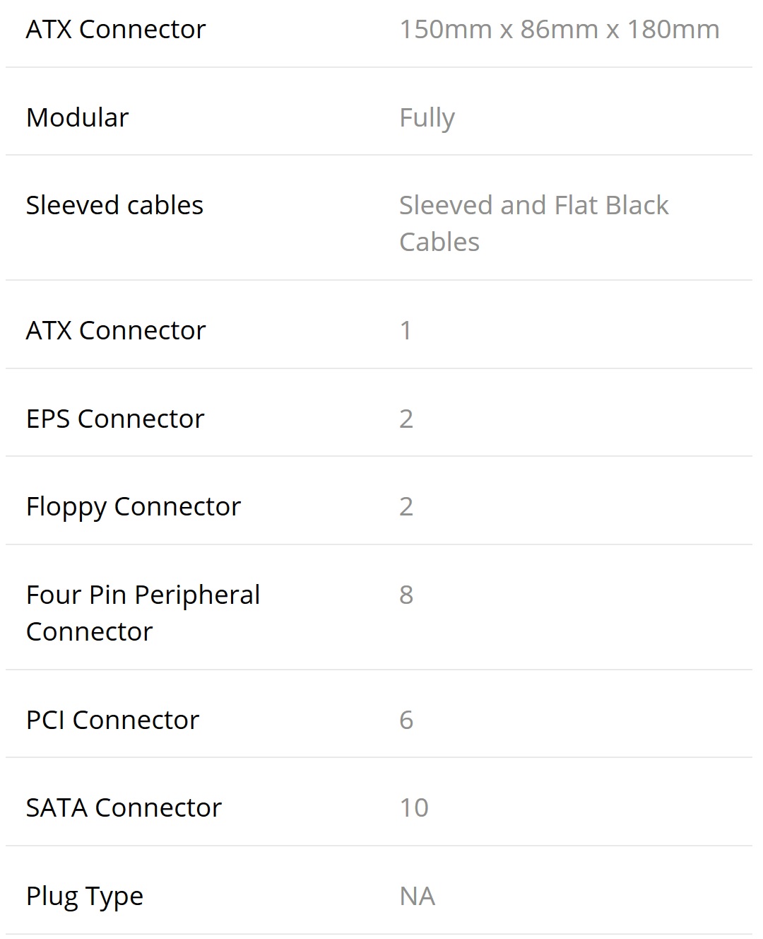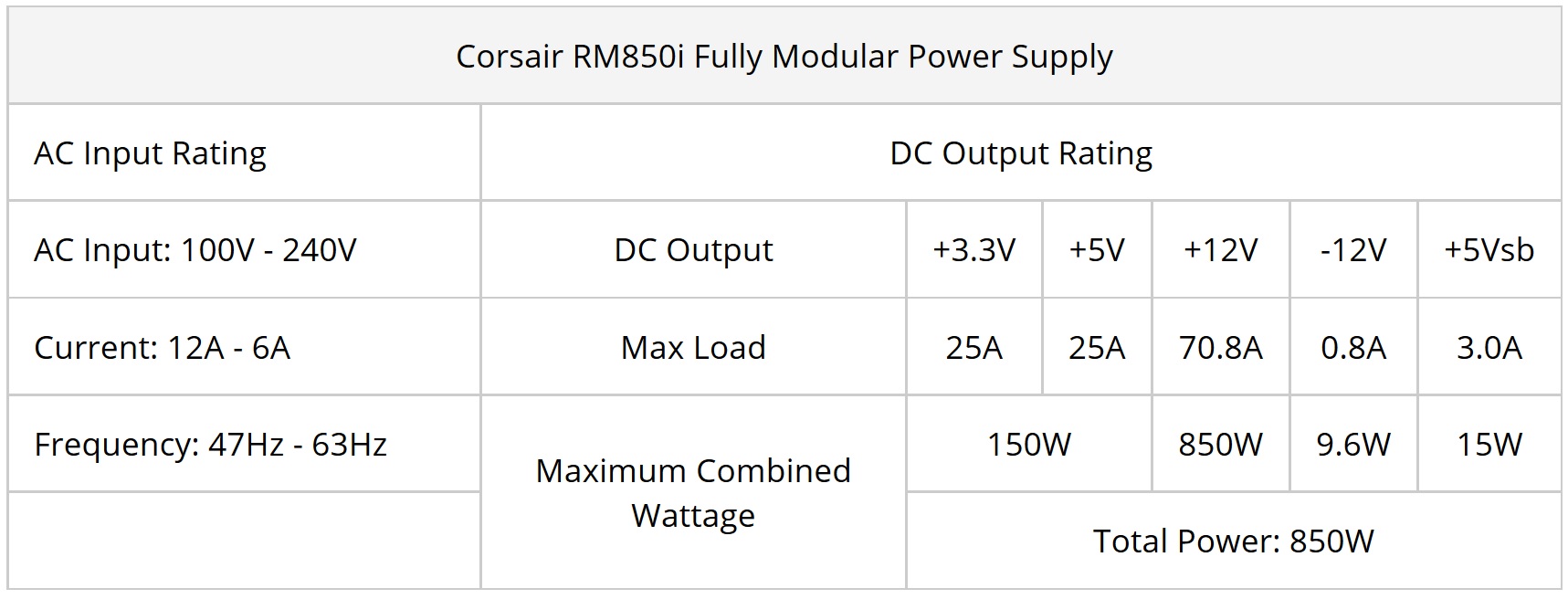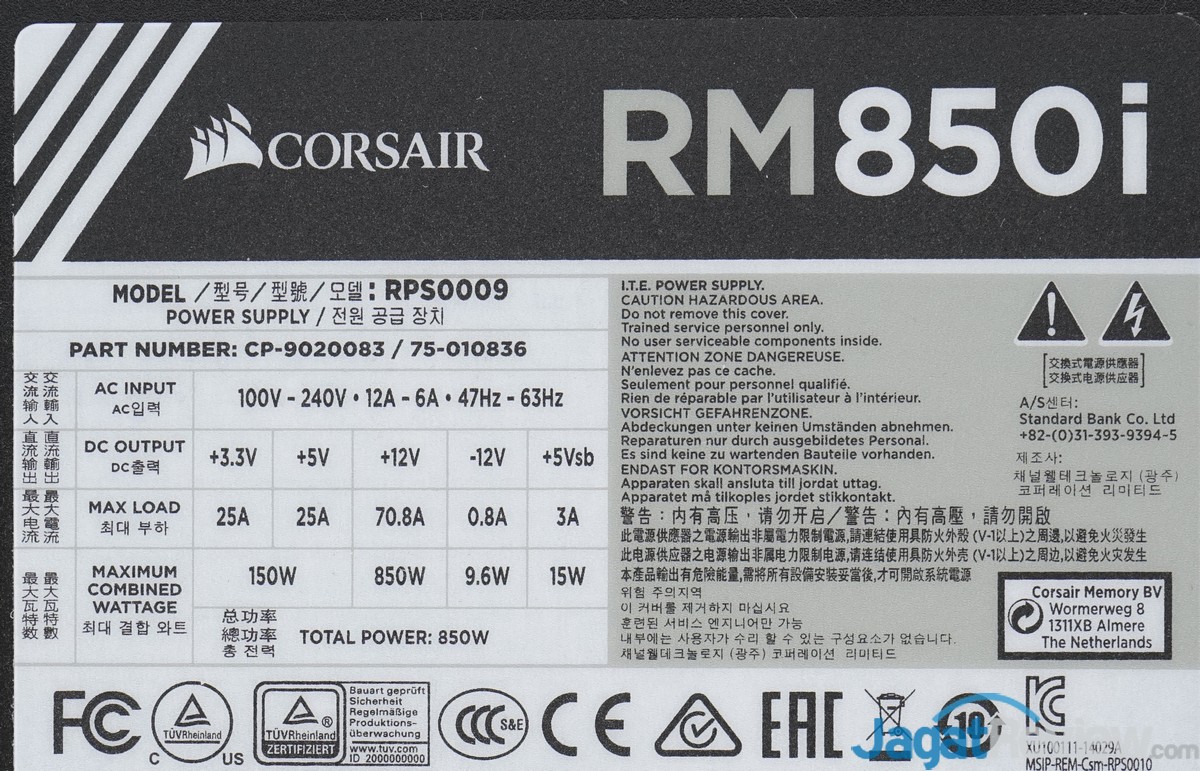 Berikut spesifikasi singkat dari PSU Corsair RM850i ini: