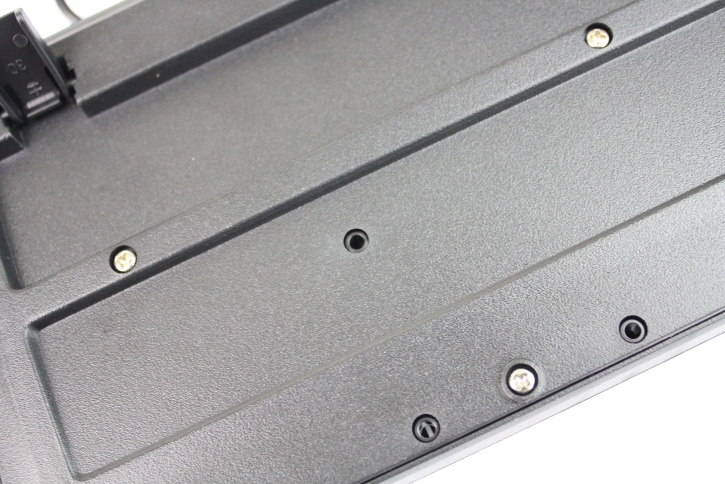 Bagian bawah keyboard dibalur dengan warna yang serupa dengan bagian atas. Terdapat dua buah stand yang dapat dilipas untuk mengatur ketinggian keyboard ketika digunakan. Terdapat beberapa lubang pembuangan air untuk mendukung fitur spill resistant dari keyboard ini.