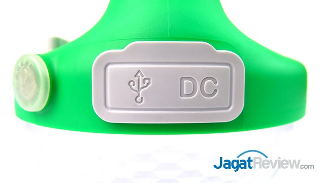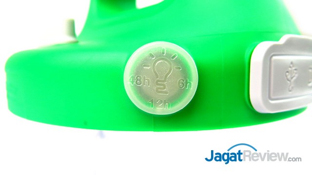 Di sebelah tombol ON/OFF tersebut, terdapat port untuk USB dan port adapter untuk disambungkan dengan panel solar 6V, 2.5W. Panel solar inilah yang digunakan untuk mengisi ulang daya dari lampu tersebut. Tapi jika tidak menggunakan panel solar, lampu ini masih bisa diisi ulang selama terdapat adapter listrik yang cocok dengan port yang dimiliki oleh lampu tersebut.
