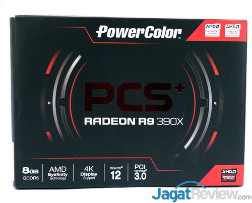Kemasan dari PowerColor ini tampak mirip dengan R9 380 PCS+ yang telah kami review sebelumnya. Terlihat warna hitam dan merah tetap menghiasi kemasan tersebut.