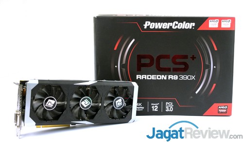 R9 390X dari PowerColor ini terlihat gagah dengan heatsink besar dan 3 buah fan. Tampilannya terlihat “bersih” dengan perpaduan warna hitam dan putih, berbeda dengan kemasannya yang mengusung warna hitam dan merah. PowerColor tentu saja telah menyematkan komponen yang diberi nama Gold PowerKIT, yang diklaim mampu meningkatkan stabilitas, performa dan juga efisiensi dari graphics card tersebut.