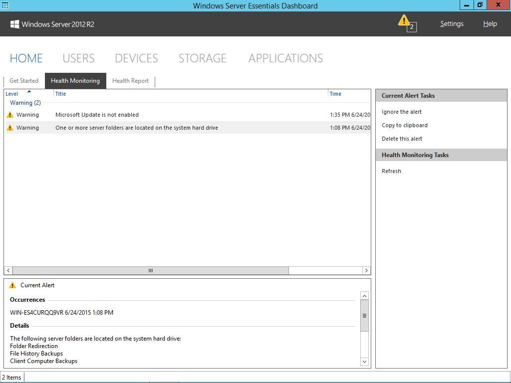 Di sistem operasi ini, terdapat dashboard yang digunakan untuk mengatur segala fungsi yang terkait dengan NAS. Anda bisa melakukan berbagai konfigurasi dari NAS ini di sini, termasuk untuk membuat Storage Space, alias volume penyimpanan. Terdapat beberapa mode yang bisa dipilih untuk memanfaatkan hingga dua storage yang terpasang. Sayangnya, Windows Storage Server 2012 R2 Essentials tidak menggunakan istilah yang umum digunakan di NAS, seperti RAID 0, RAID 1, RAID 5, RAID 10, dan JBOD. Sistem operasi ini memiliki penamaan tersendiri untuk istilah-istilah umum tersebut.