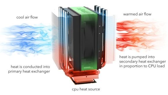 Pabrikan asal Amerika Serikat ini juga mengklaim, performanya melebihi efektivitas pendingin yang lebih besar, bahkan watercooling. Uniknya teknologi ini hanya diadaopsi heatsink mini, tepatnya lebih kecil dari pendingin heatsink lain yang umumnya berdiameter lebih besar.