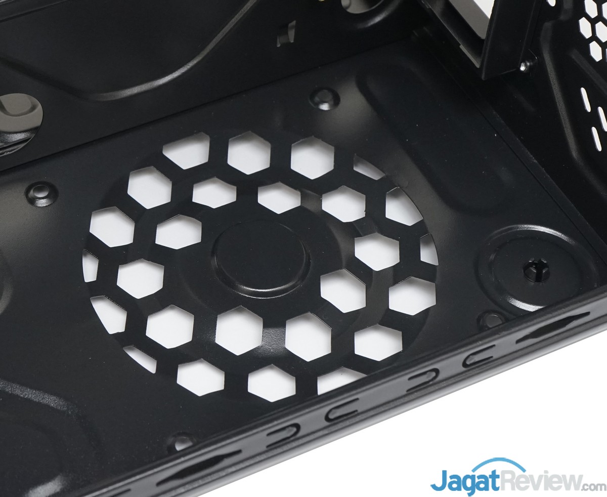 Pada bagian bawahnya, terutama di ruangan motherboard casing ini, pengguna masih dapat menambahkan fan berukuran 120 mm untuk mengoptimalkan aliran udara di dalam casing ini.