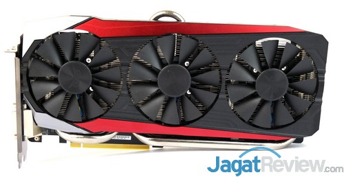 ASUS juga melengkapi pendingin Direct CU III ini dengan tiga buah fan berukuran 90 mm. Fan terbaru dari ASUS tersebut dinamakan “Triple Wing-Blade 0db Fans”. Seperti namanya graphics card ini menganut teknologi yang memungkinkan untuk mematikan fan saat graphics card digunakan secara ringan ataupun idle. Untuk menguji kemampuan dari pendingin Direct CU III ini, kami mencoba menjalankannya di Unignine Heaven 4.0 yang tergolong “menyiksa GPU” tetapi ringan terhadap CPU ataupun RAM. Hal tersebut untuk dapat lebih memperkirakan konsumsi daya dari graphics card itu sendiri.