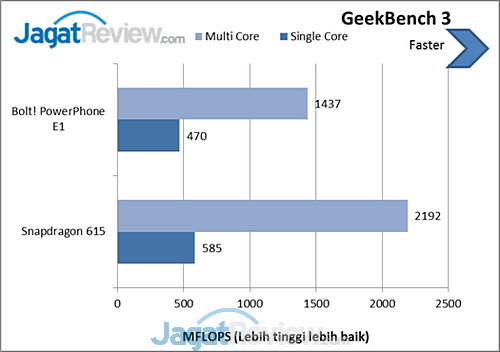 GeekBench 3 merupakan benchmark cross platform yang mengukur kinerja prosesor sebuah perangkat smartphone, tablet, dan PC. Aplikasi ini menggunakan skenario simulasi real world sehingga mampu menganalisa performa sebuah prosesor saat menggunakan single core atau multi core. Semakin tinggi nilainya, semakin baik.