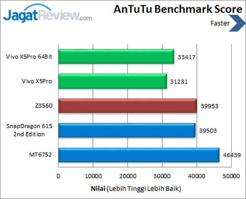 AnTuTu Benchmark merupakan sebuah benchmark suite yang menguji RAM, CPU, GPU, dan Storage yang ada, termasuk SD Card bawaan. Perhitungan total nilainya cukup mudah, yaitu dengan menjumlahkan nilai perolehan dari tiap detail. Karena tidak semua smartphone Android memberikan SD Card sebagai bonus perlengkapan, kami menghadirkan dua nilai akhir yang dapat Anda jadikan patokan. Saat perangkat mendukung instruksi 64-bit, kami melakukan dua kali pengujian.