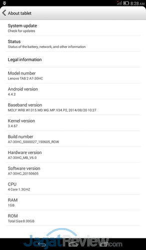 Soal spesifikasi lainnya, Lenovo Tab 2 A7-30 dibekali MediaTek MT8382m dengan prosesor quad-core Cortex-A7 berkecepatan 1.3GHz dan GPU Mali-400MP4. Selain itu, pengguna juga akan menemukan RAM 1GB, memori internal 8GB dengan slot microSD, kamera belakang 2 megapixel, kamera depan VGA, dan baterai 3450mAh. Sistem operasi yang digunakan adalah Android 4.4.2 KitKat dengan VibeUI. Tablet ini juga memiliki slot SIM-Card untuk koneksi 3G, Bluetooth 4.0, WiFi, dan GPS.