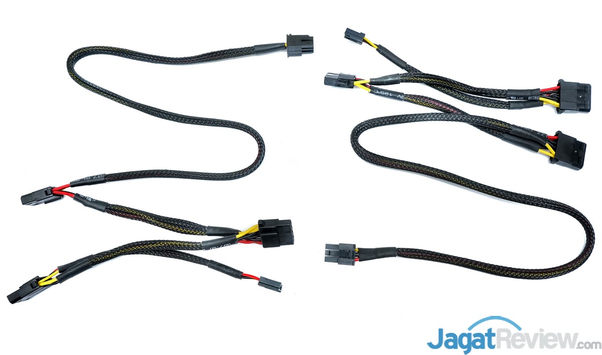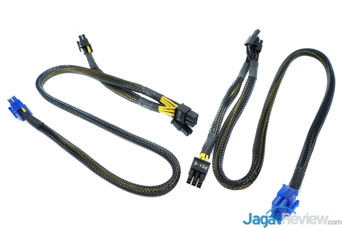 PSU Enlight “ENP-700HP” ini dilengkapi dengan 2 kabel modular PCIe power yang masing-masing memiliki 1 konektor PCIe 6+2 pin dan 1 konektor PCIe 6-pin.