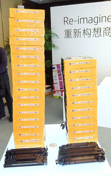 HP pun memperkenalkan paper tray yang bisa menampuang 550 lembar kertas. Apa istimewanya? Ternyata, paper tray 500 lembar (1 rim) yang dipakai selama ini menimbulkan pemborosan kertas di perkantoran. Karena, paper tray biasanya akan ditambah isinya sebelum 500 lembar kertas habis. Umumnya ada sekitar beberapa puluh lembar kertas tersisa di dalam paper tray saat pengisian kertas dilakukan. Hal ini membuat kertas yang tersisa tersebut dikeluarkan dari tray untuk diisi dengan 500 lembar (1 rim) kertas baru. Biasanya kertas yang dikeluarkan ini akan menjadi terbuang atau rusak. Jadi, dengan paper tray 550 lembar, HP membuat pengisian 1 rim kertas bisa dilakukan tanpa harus membuang beberapa puluh lembar kertas yang masih ada di dalam paper tray. Penghematan hingga 10% dapat terjadi dengan paper tray ini.