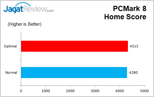PCMark 8 Home berisi sekumpulan beban pengujian dimana beban pengujian tersebut menggambarkan aktivitas pengguna pada umumnya pada sistem rumahan mereka. Beban pengujian mencakup aktivitas Web Browsing, Writing, Casual Gaming, Photo Editing, dan Video Chat.