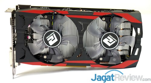 Graphics card ini tergolong pendek, tetapi memiliki tebal yang cukup tinggi, yakni 21,12 x 11,12 x 3,6 cm. Terlihat juga dari luar, heatsink dari Nitro yang terlihat “kekar” dan siap mengalokasikan panas dengan baik.