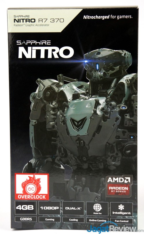 Sama seperti produk Sapphire dengan nama Nitro lain nya, kotak kemasan dari graphics card tersebut dilengkapi dengan karakter robot Nitro tersebut.