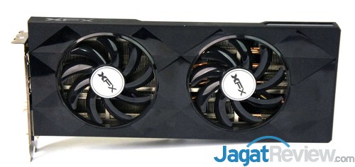 XFX menggunakan dua buah fan berukuran 90mm untuk memberikan angin segar bagi sistem pendingin mereka yang dinamakan “Double Dissipation”. Kami pun menguji sistem pendingin yang disematkan XFX tersebut menggunakan Unigine Heaven 4.0 yang tergolong mampu mengeluarkan kemampuan GPU seluruhnya.